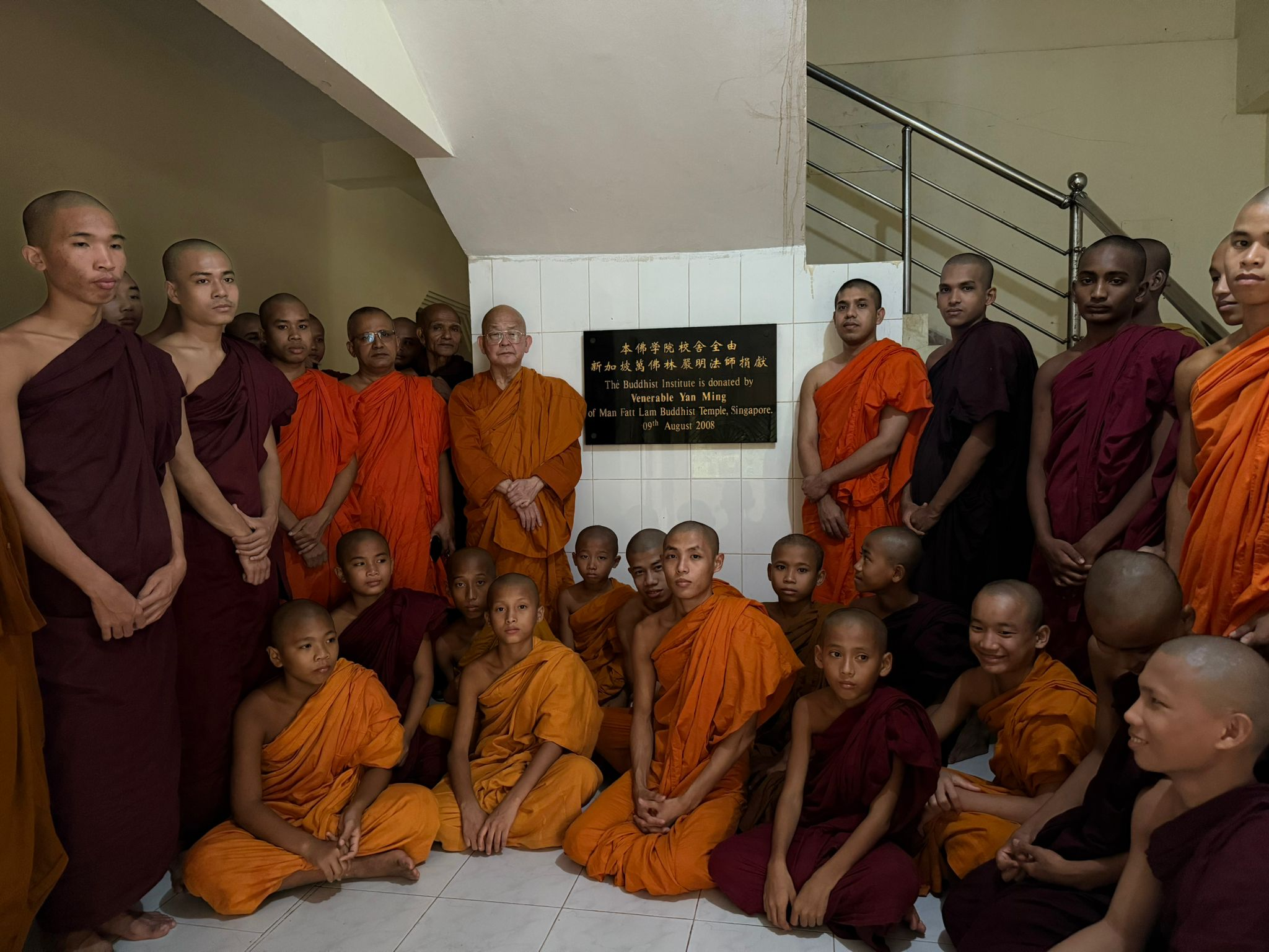 Venerable Professor K L Dhammajoti meets with students at Vidyācaraṇa Buddhist Resource in Malaysia
